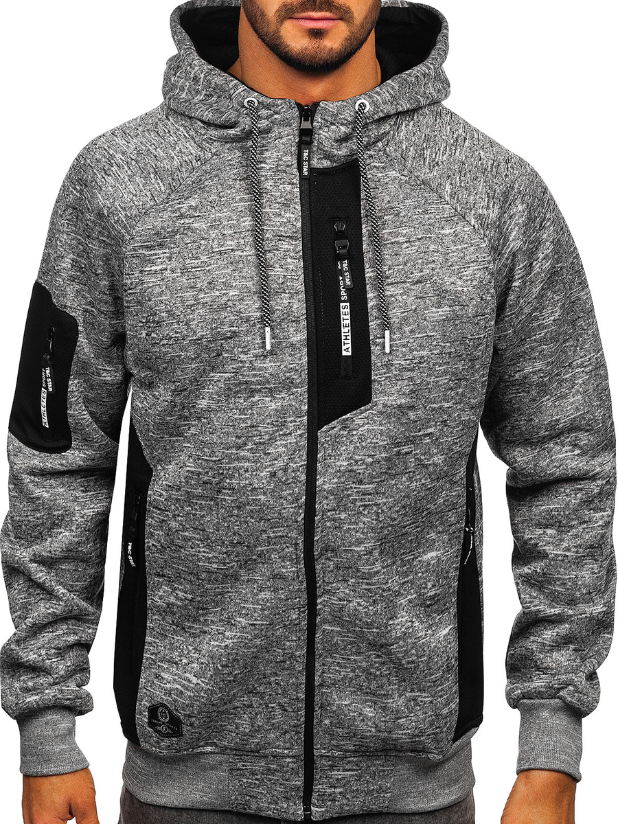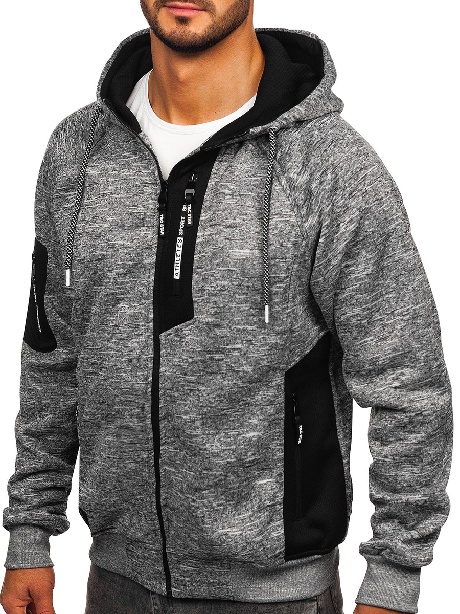 A felhasználók véleménye Szürke bélelt férfi kapucnis pulóver Bolf TC1306