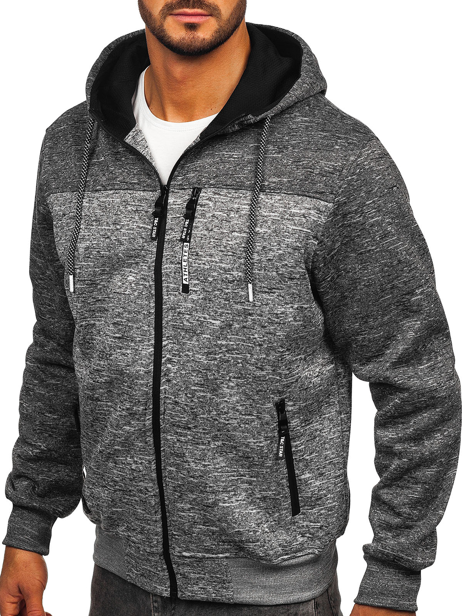 A felhasználók véleménye Szürke bélelt férfi kapucnis pulóver Bolf TC1308