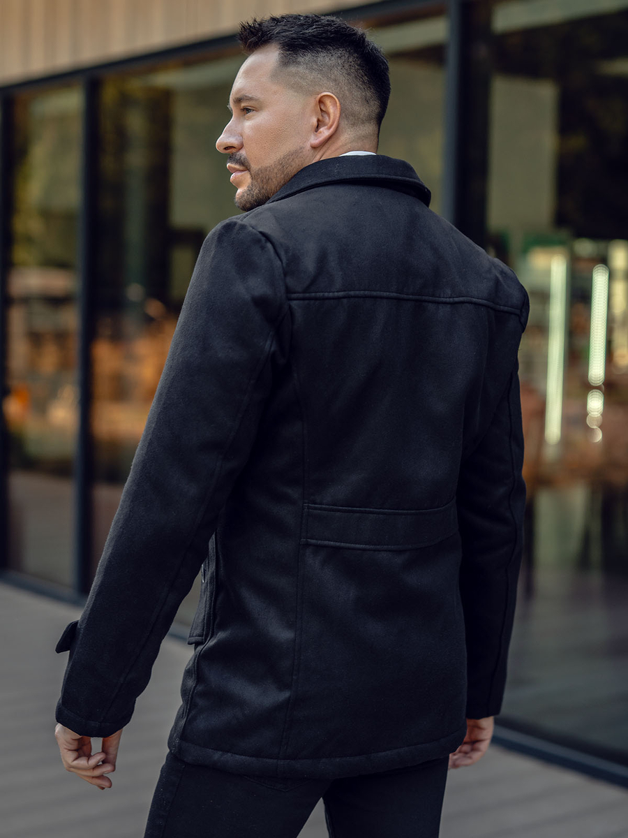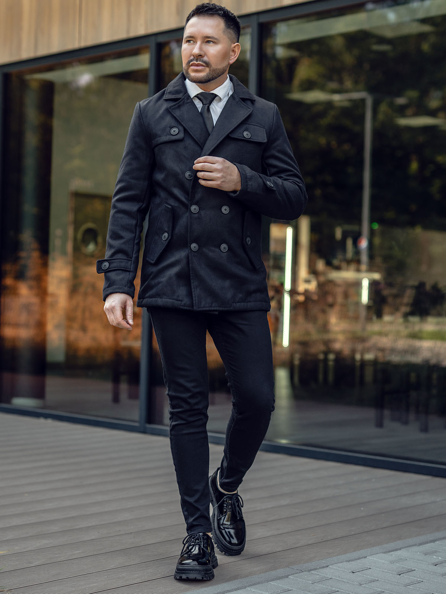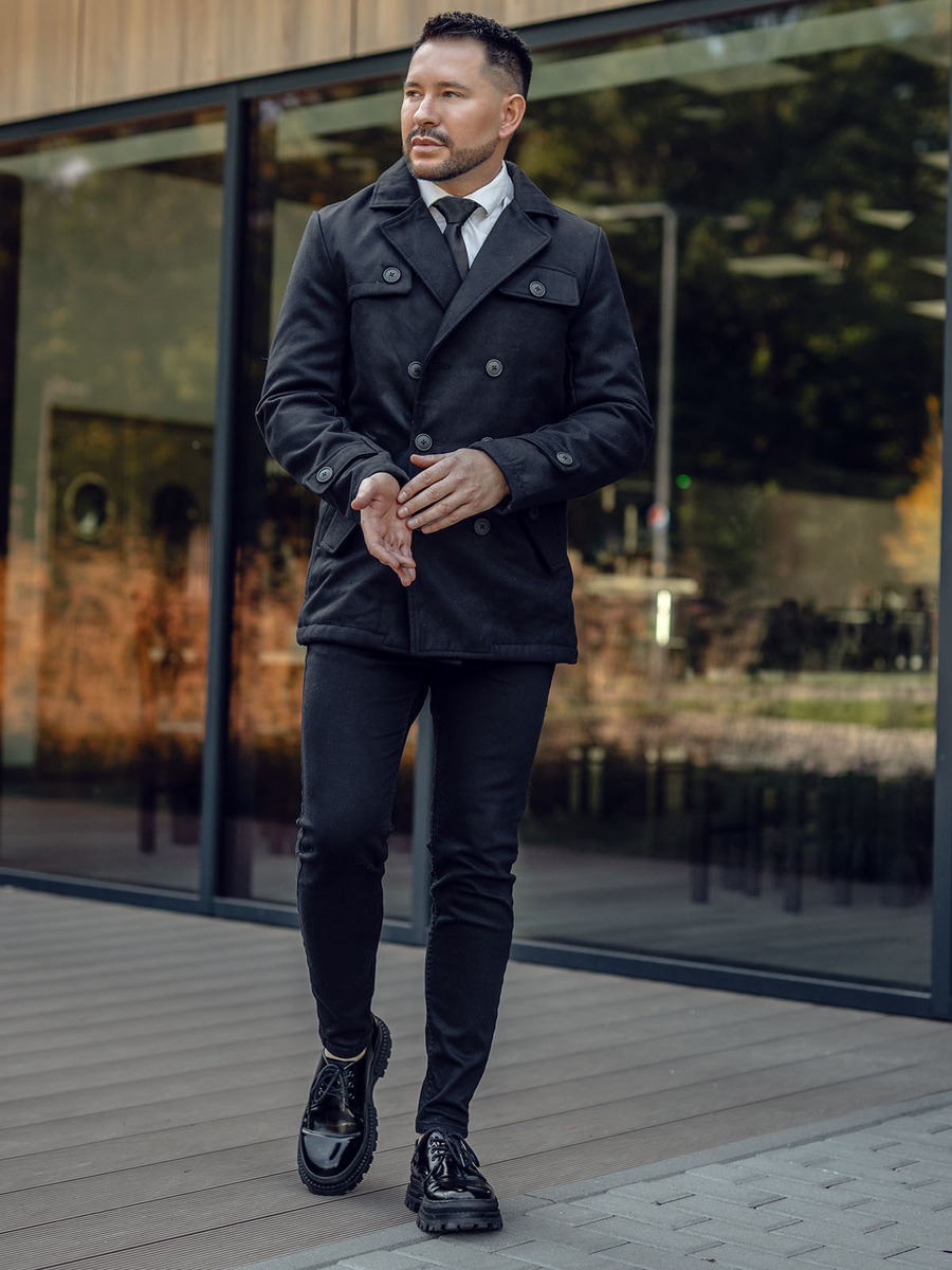 A fekete, duplasoros férfi téli Bolf M3142A kabát tökéletesen illeszkedik egy elegáns és divatos férfi ruhatárába. Ez egy klasszikus, duplasoros kabát, amely gombokkal záródik. Rever típusú gallérral rendelkezik, három külső zsebbel, amelyek gombbal zárhatók, valamint egy belső zsebbel. A kabát magas minőségű anyagból készült. Egyedi, időtálló és elegáns egyben. A kabát vállapokkal rendelkezik az ujjakon és bélelt belső résszel. Kiválóan mutat mind begombolva, mind kigombolva. Tökéletesen kombinálható chino nadrággal, inggel és zakóval egy formálisabb összeállításhoz. Jól párosítható farmerral és garbóval, egyúttal létrehozva a megfelelő stilizációt egy hétköznapi sétára.