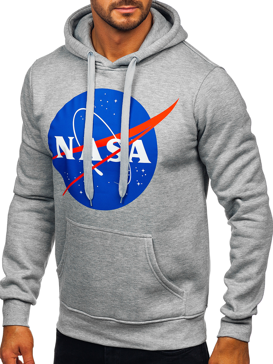 A felhasználók véleménye Szürke férfi kenguru zsebes nyomott mintás kapucnis pulóver Bolf 14602