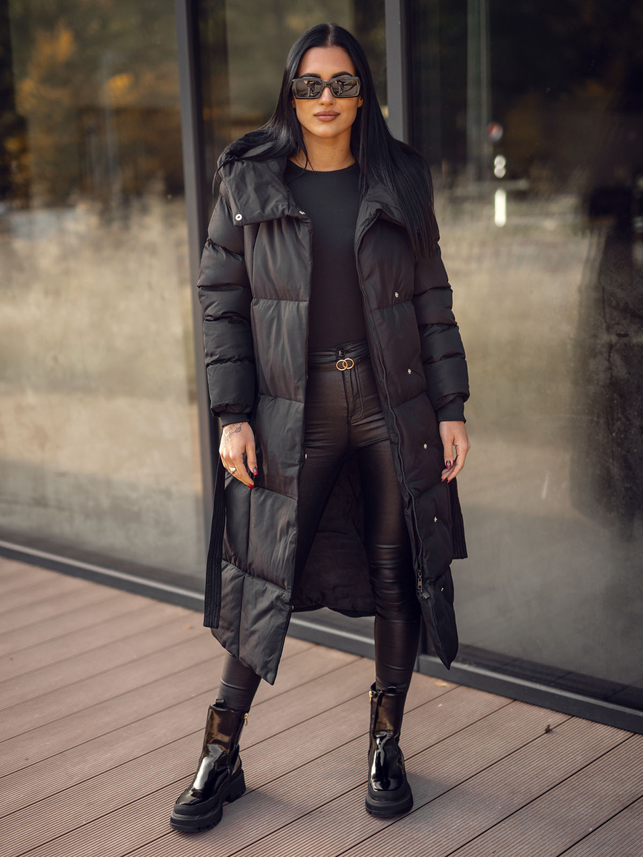 A felhasználók véleménye Fekete hosszú steppelt női télikabát kapucnival Bolf 5M3227
