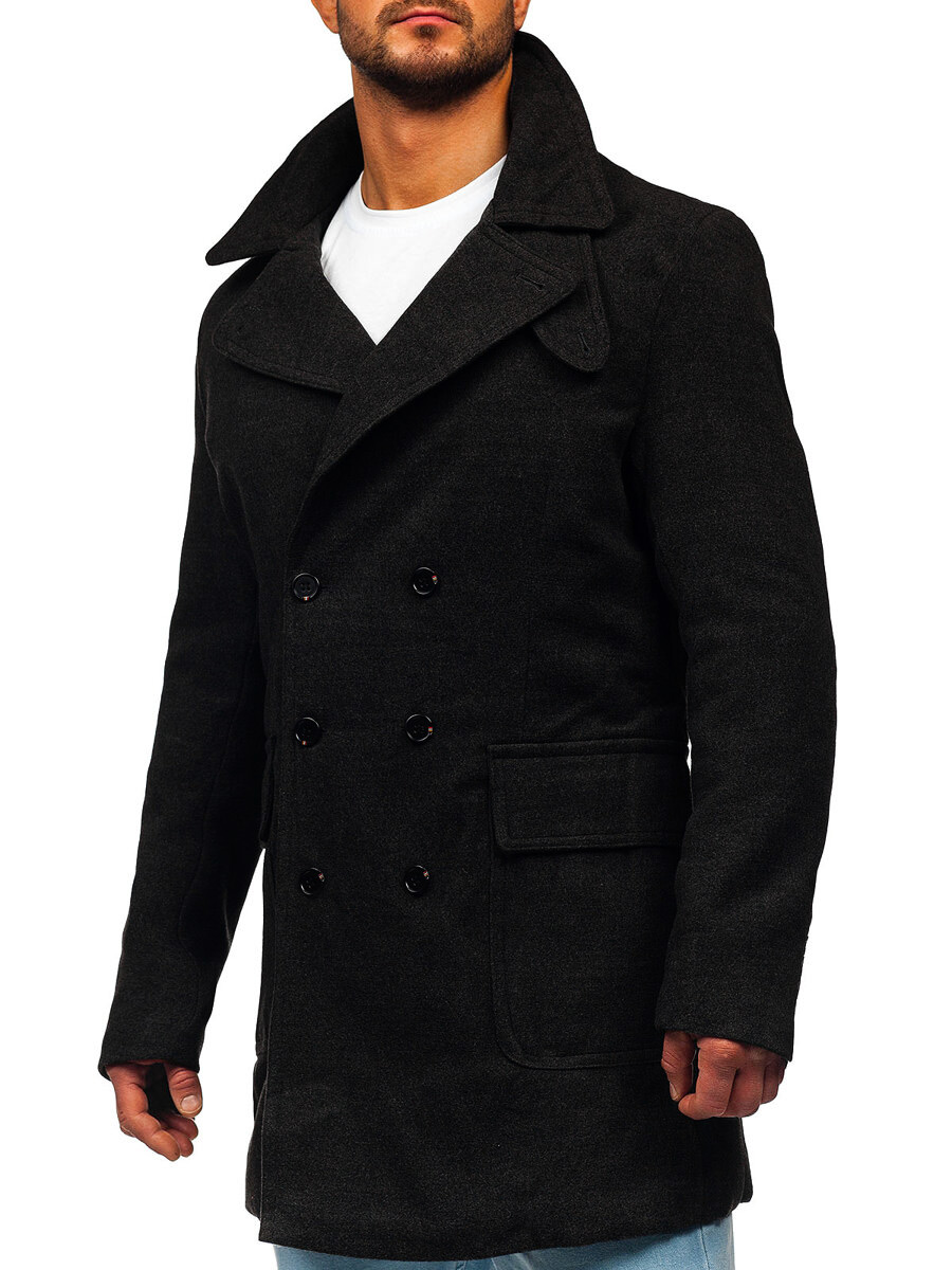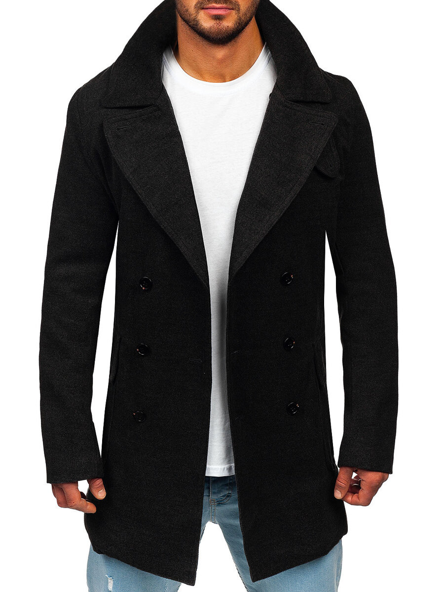 A felhasználók véleménye Fekete két soros férfi télikabát magas gallérral Bolf 1048A
