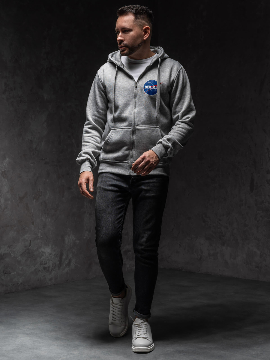 A felhasználók véleménye Szürke férfi kapucnis pulóver kenguruzsebbel és nyomattal Bolf 14603A1