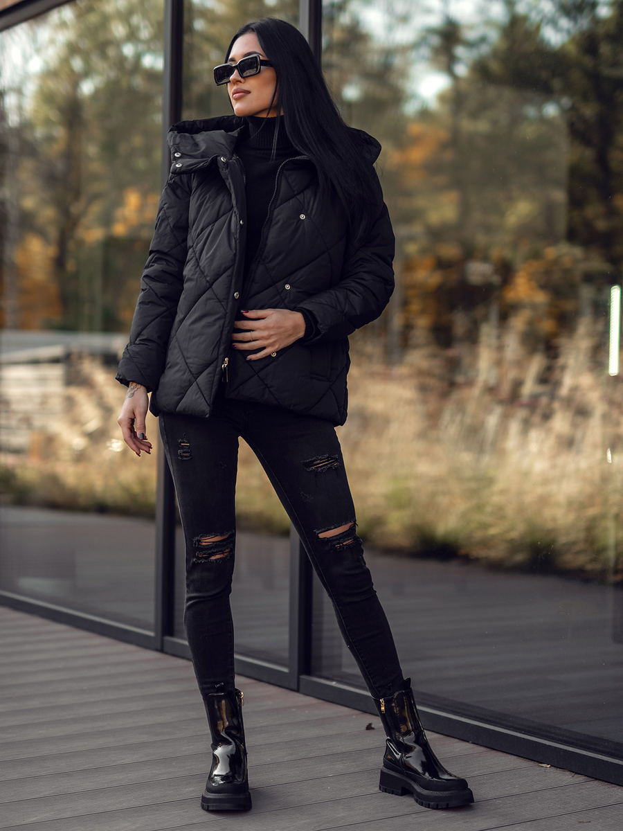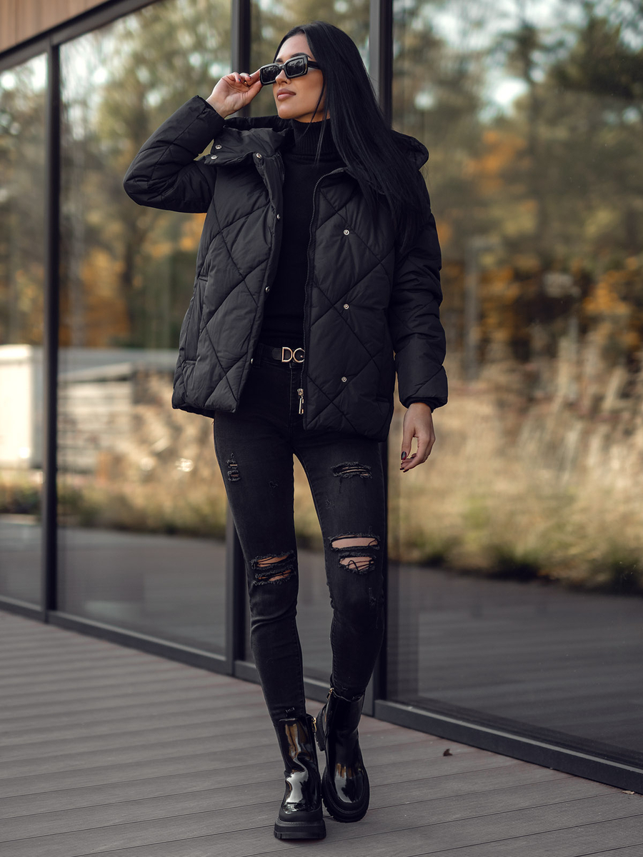 A felhasználók véleménye Fekete női téli kapucnis steppelt kabát Bolf 5M3175A2