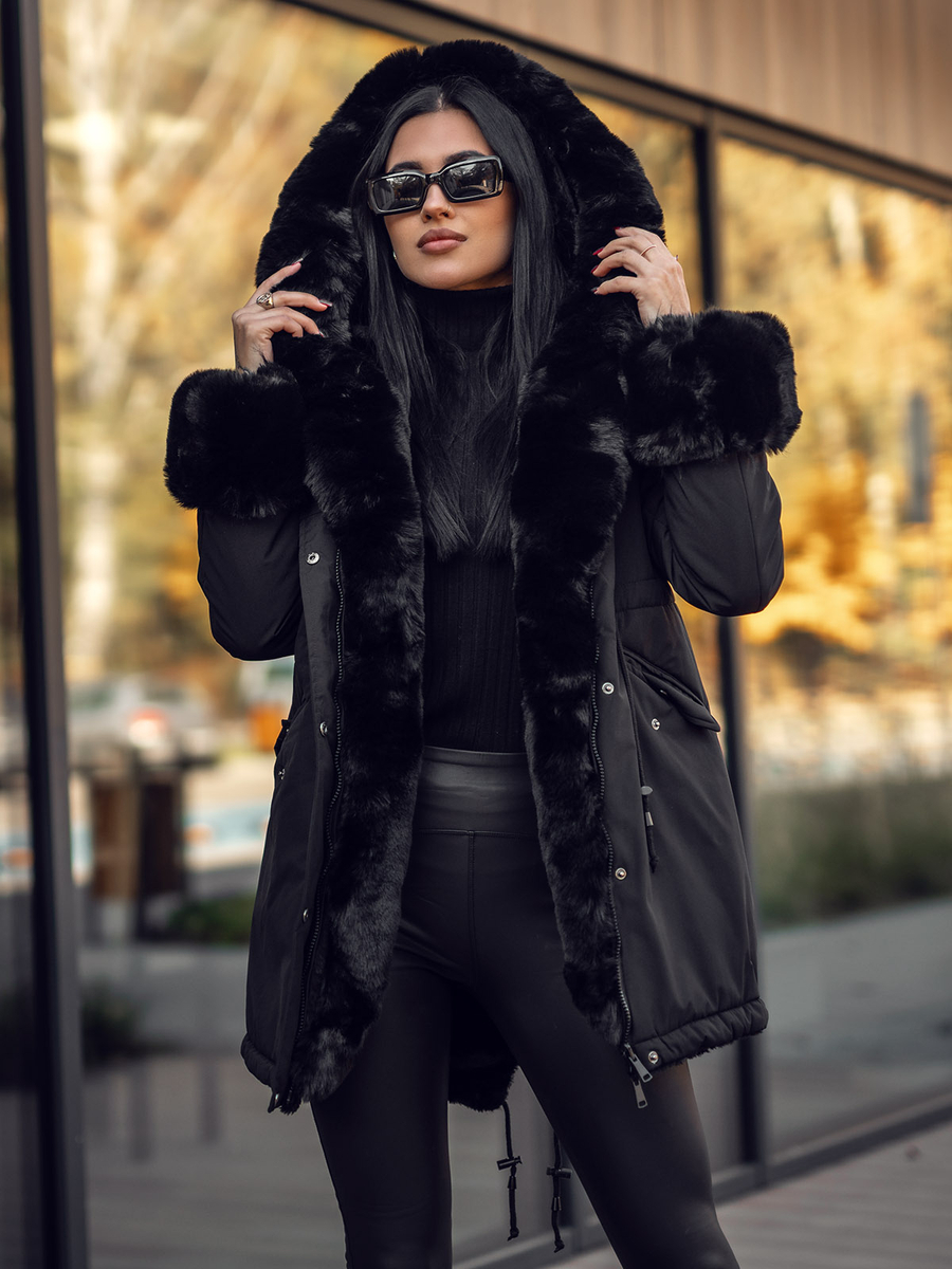 A felhasználók véleménye Fekete női téli parkakabát kapucnival Bolf 11Z8085A3