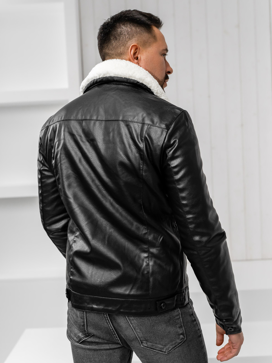 A felhasználók véleménye Fekete bőr pilóta télikabát férfi Bolf 8830