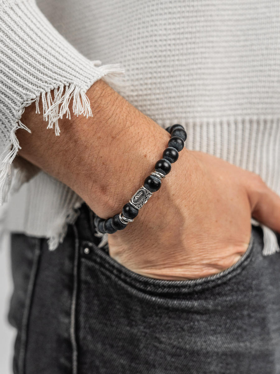 A felhasználók véleménye Fekete férfi karkötő gyöngyökkel gumis Bolf TT4912