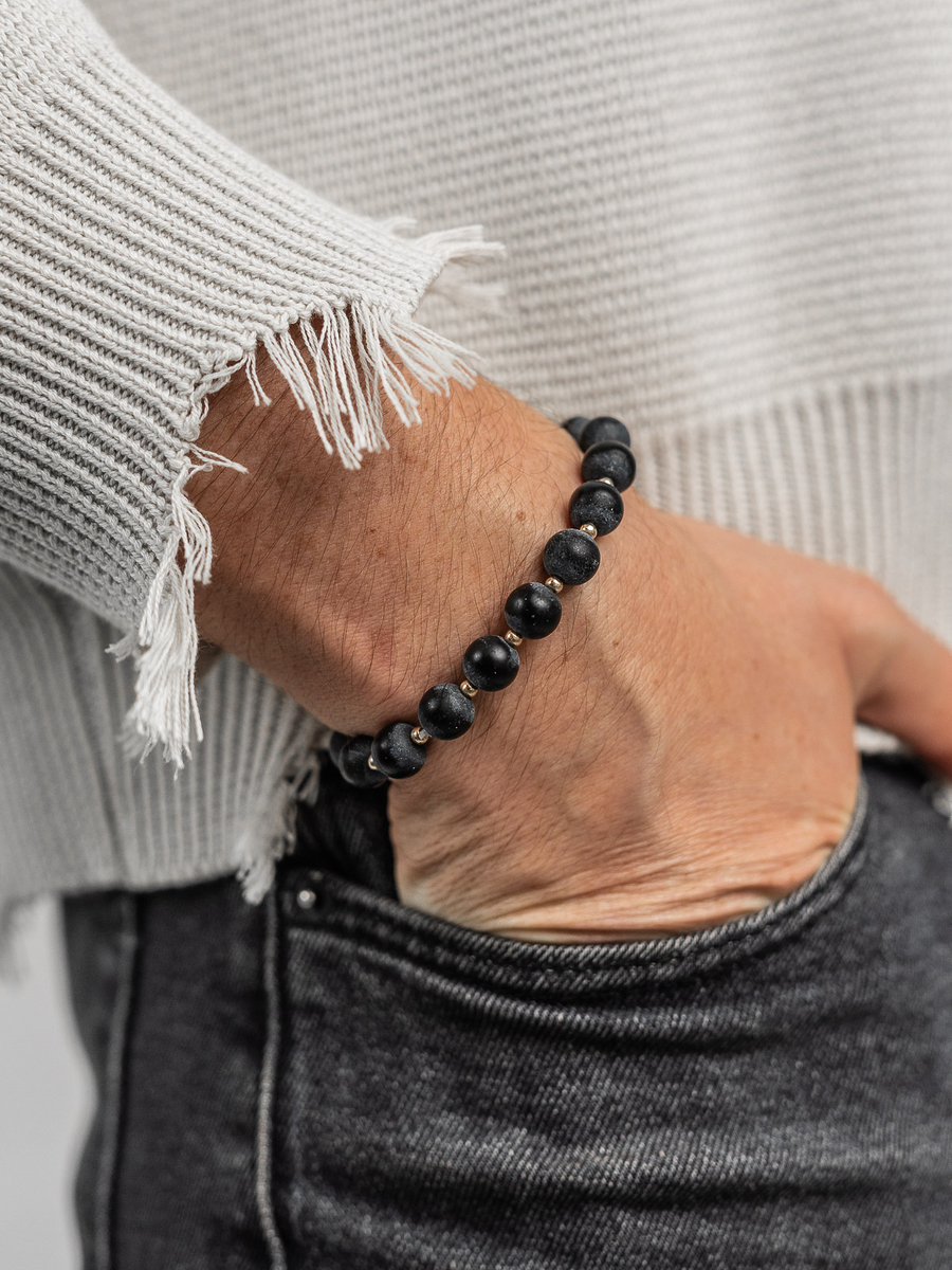 A felhasználók véleménye Fekete férfi karkötő gyöngyökkel gumis Bolf TT4904