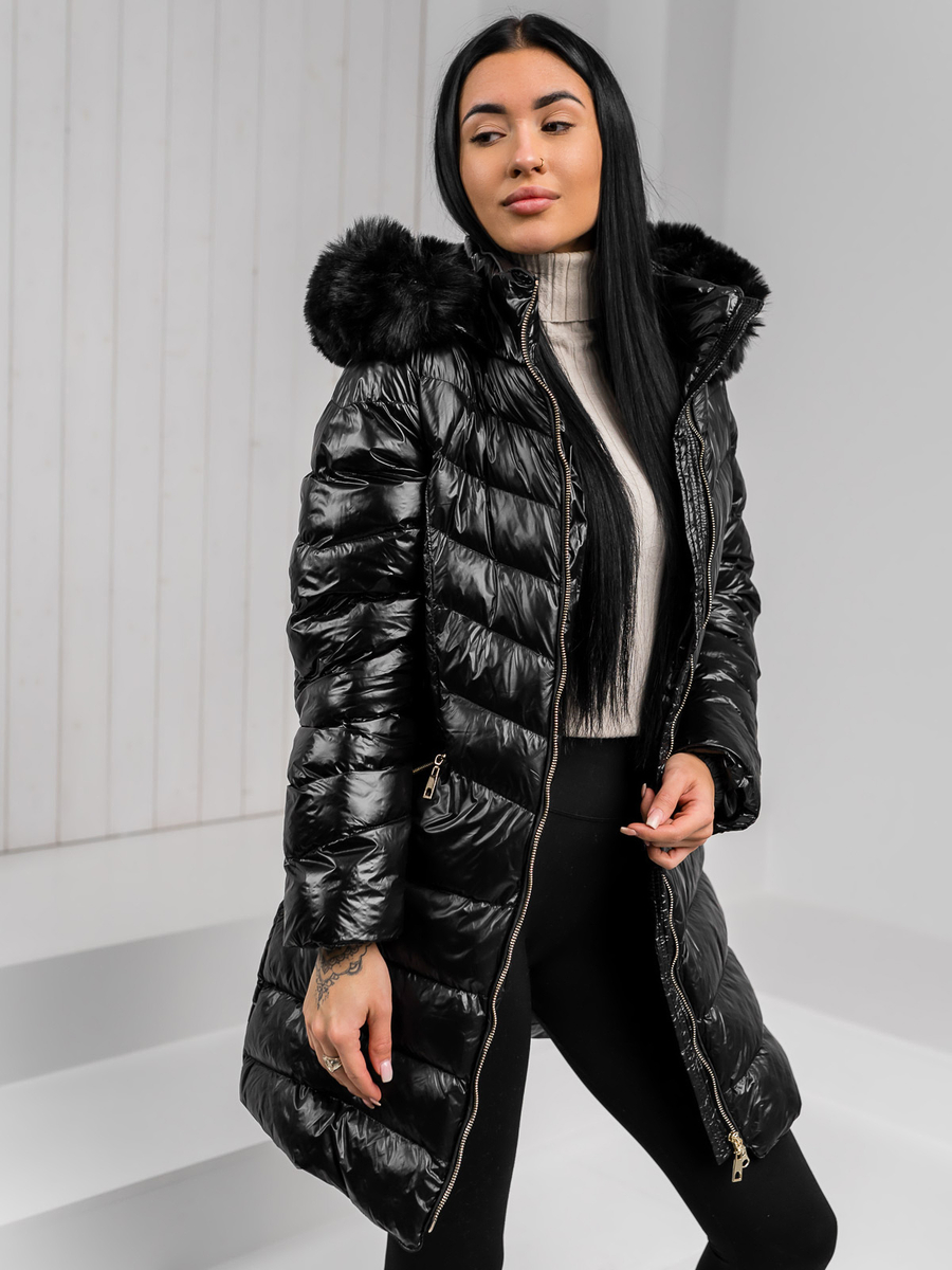A felhasználók véleménye Fekete hosszú steppelt téli kabát, kapucnival Bolf 5M3162A1