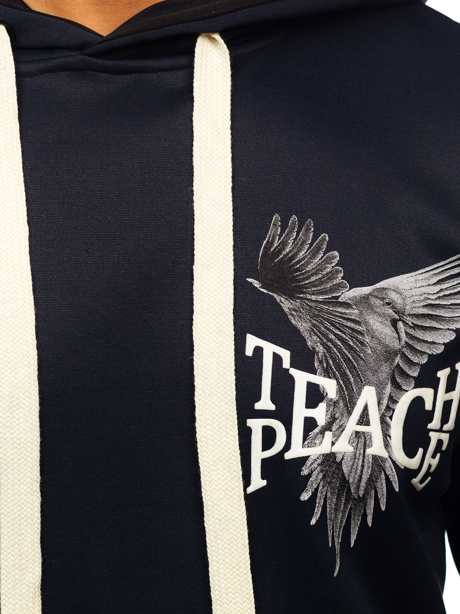 A felhasználók véleménye Sötétkék kapucnis férfi pulóver kenguruzsebbel és mintával Bolf M279