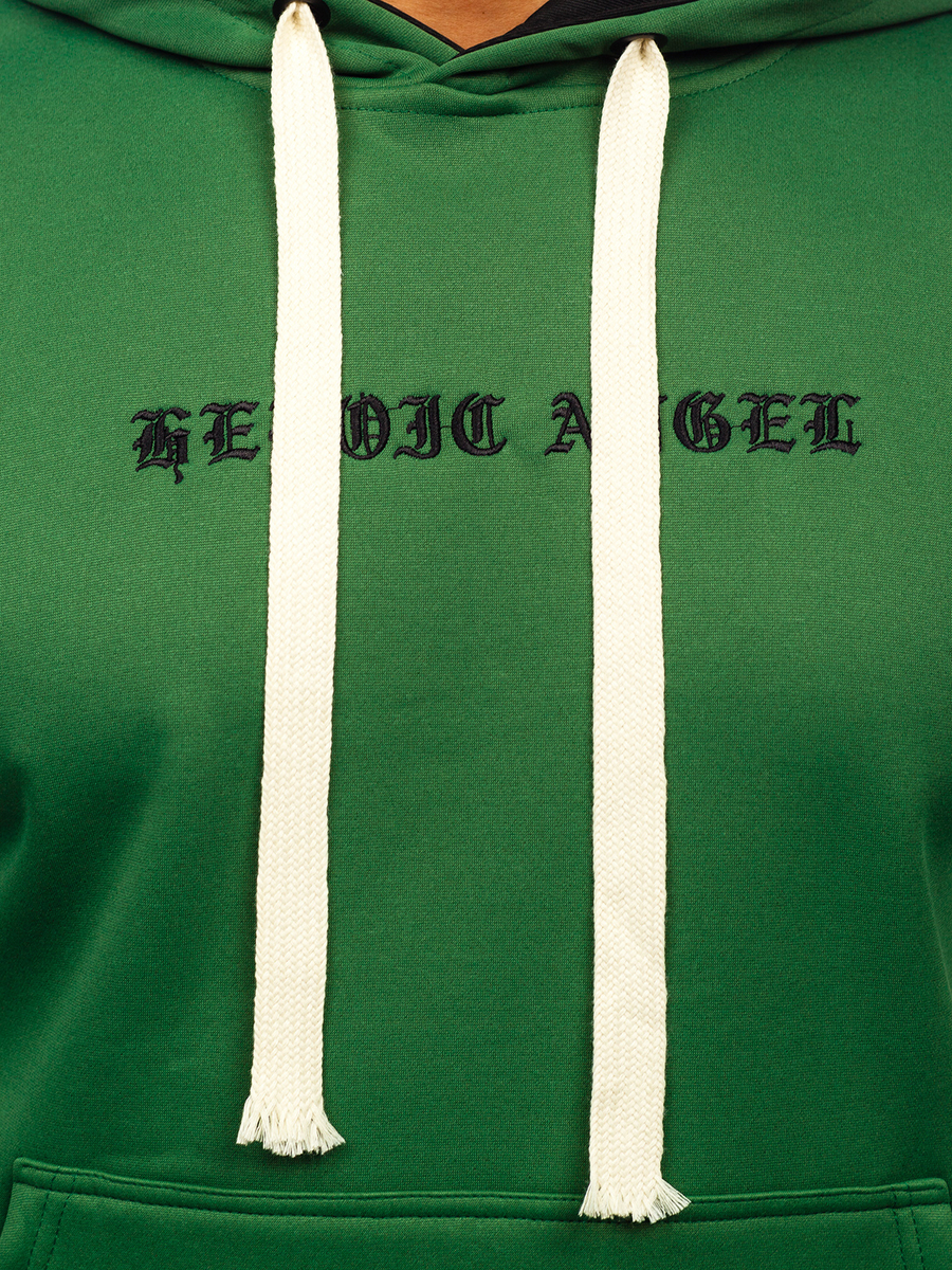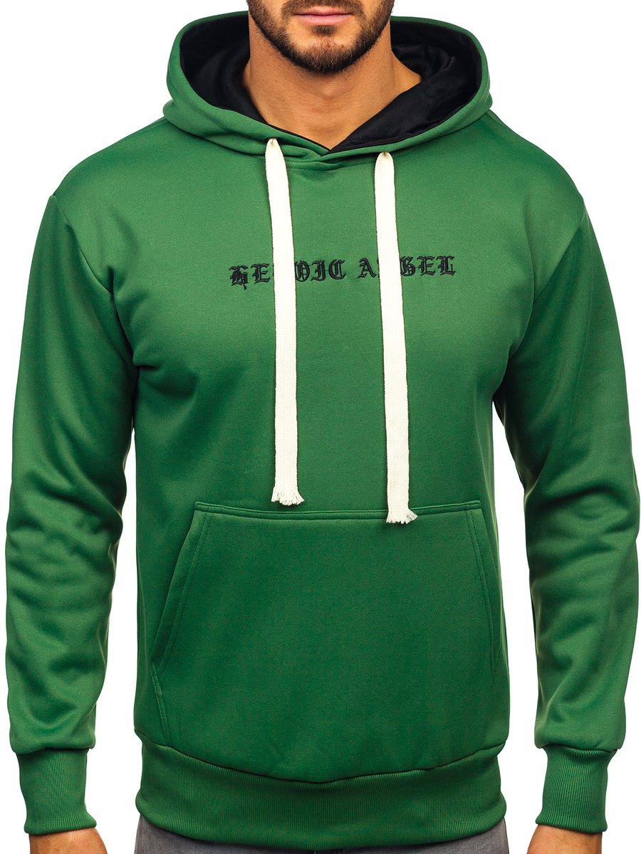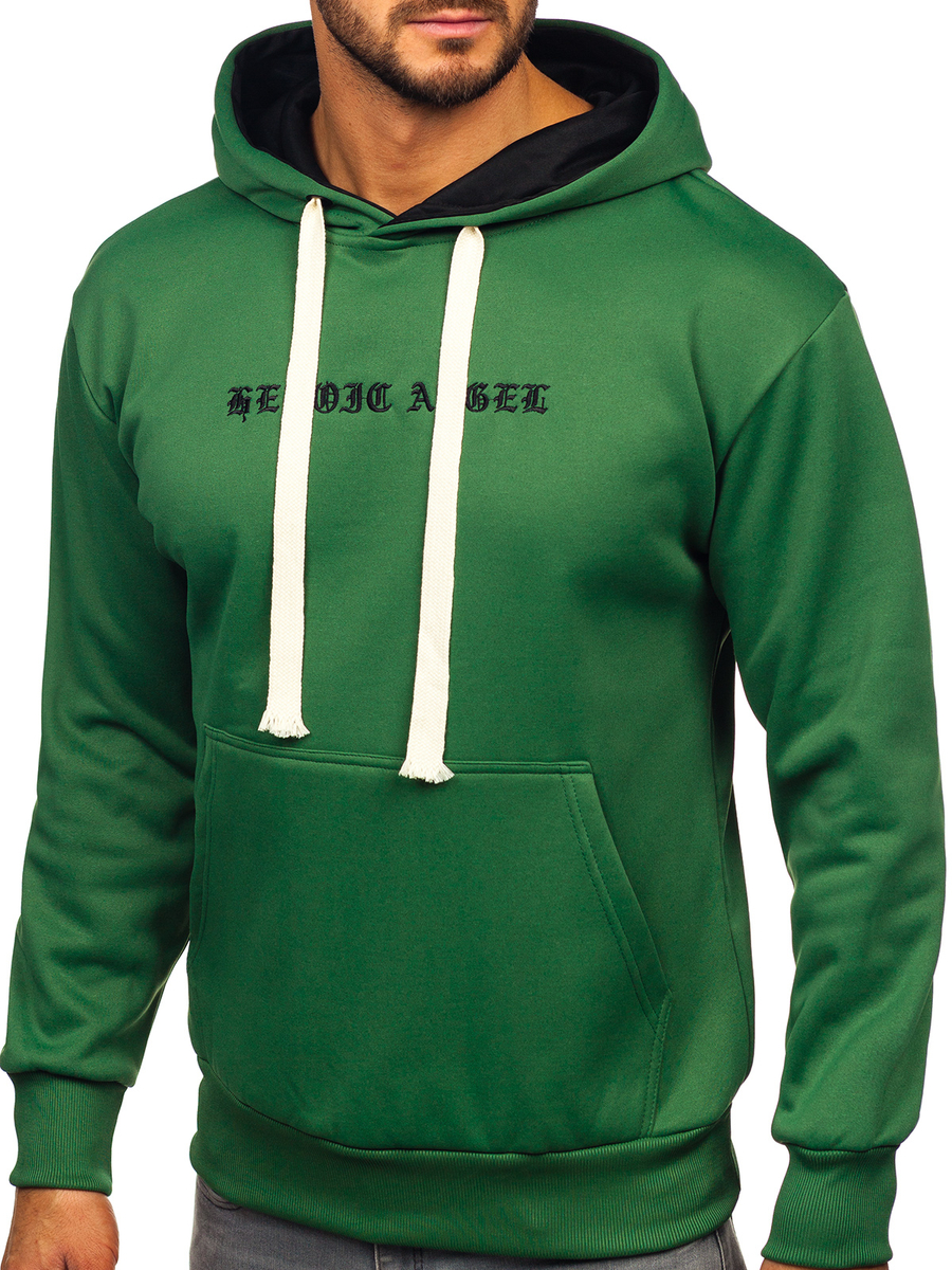 A felhasználók véleménye Zöld kapucnis férfi pulóver kenguruzsebbel és mintával Bolf M276