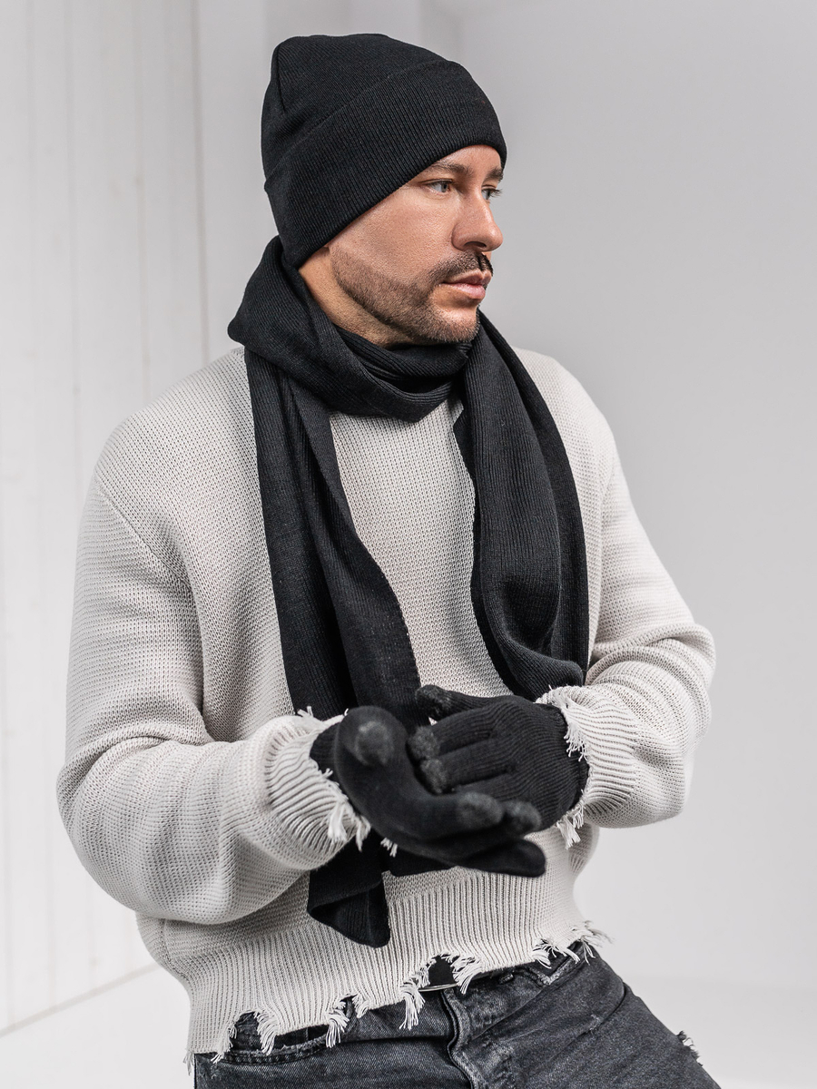 A felhasználók véleménye Fekete férfi szett – sapka, sál, kesztyűk Bolf 2025007