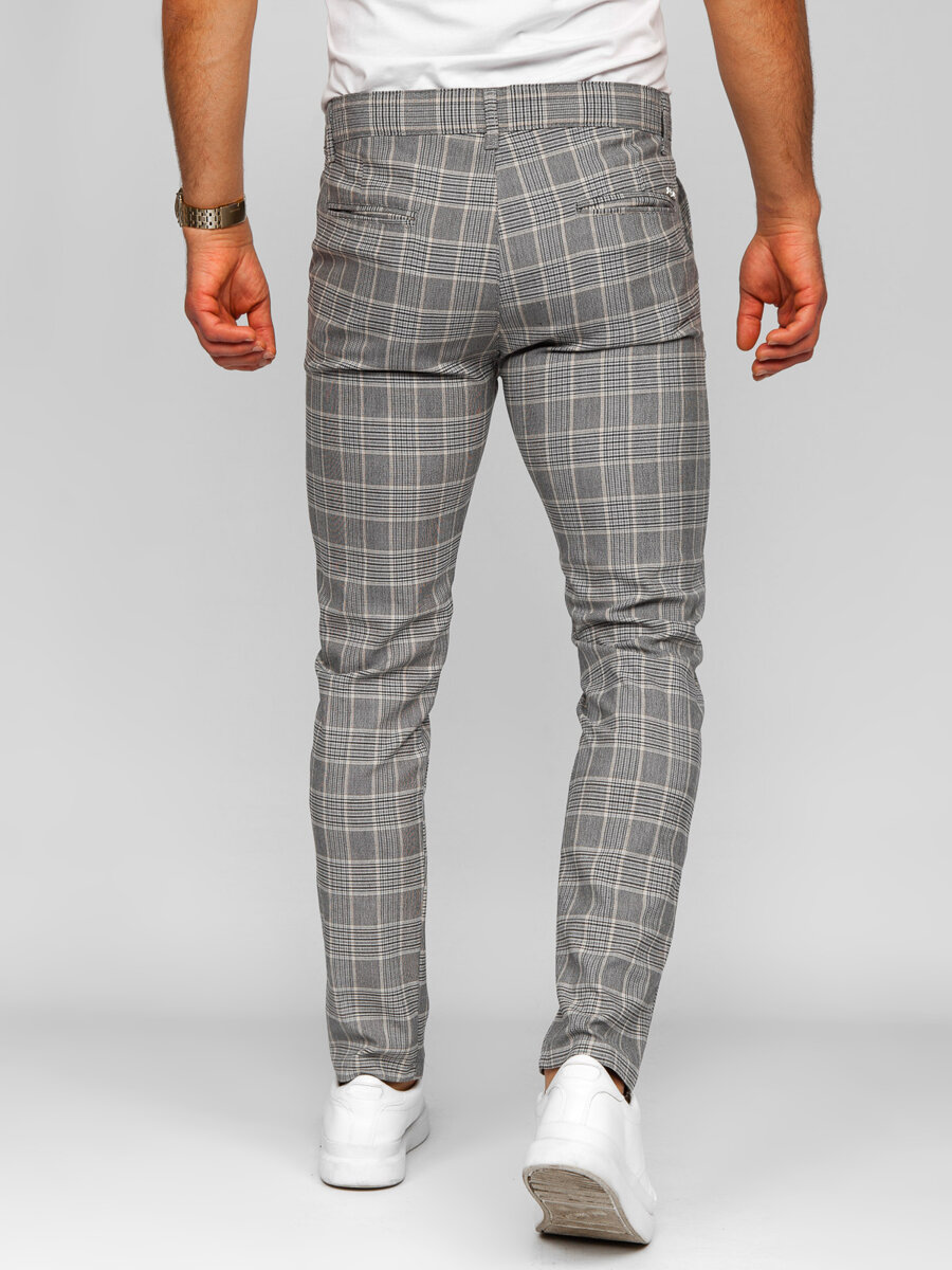 A felhasználók véleménye Szürke férfi kockás elegáns szövetnadrág Bolf 184171
