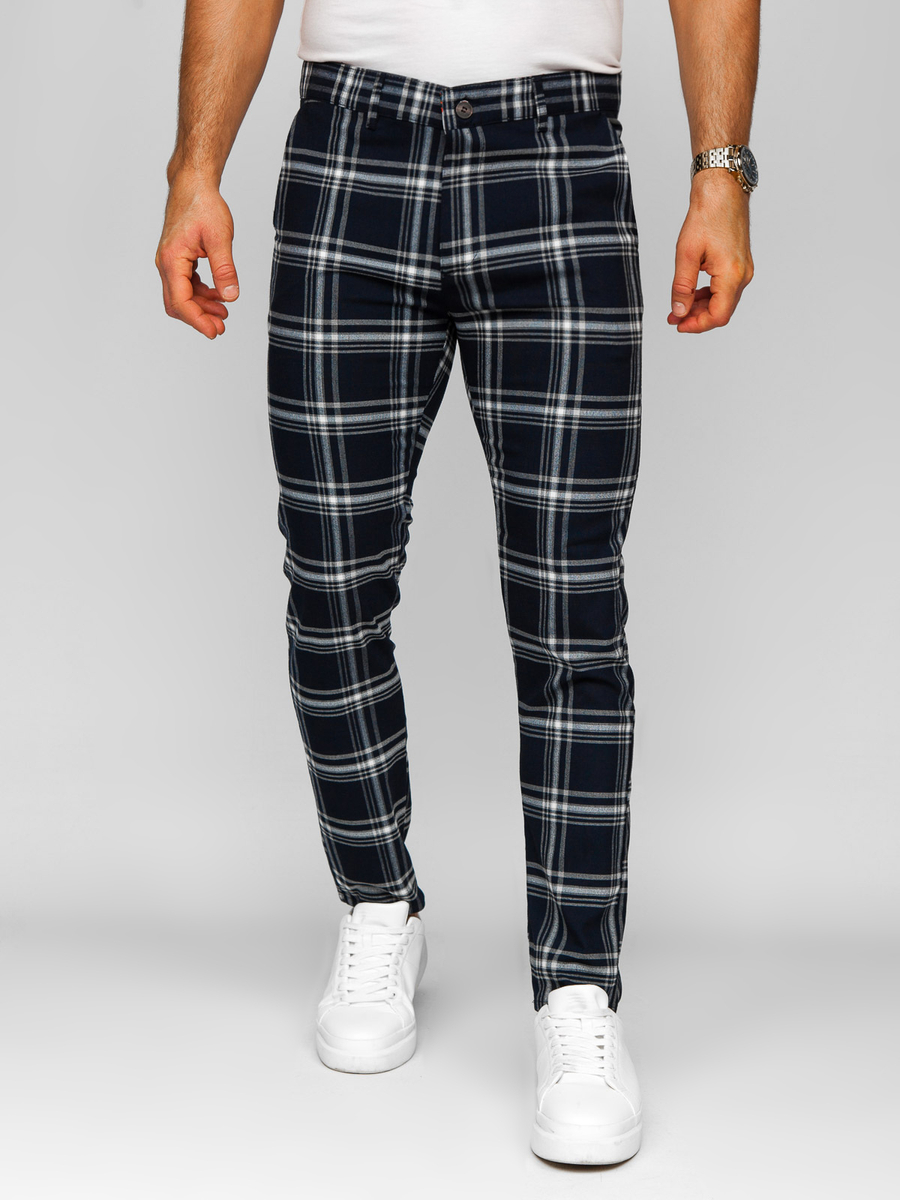 A felhasználók véleménye Sötétkék férfi kockás elegáns szövetnadrág Bolf 184144