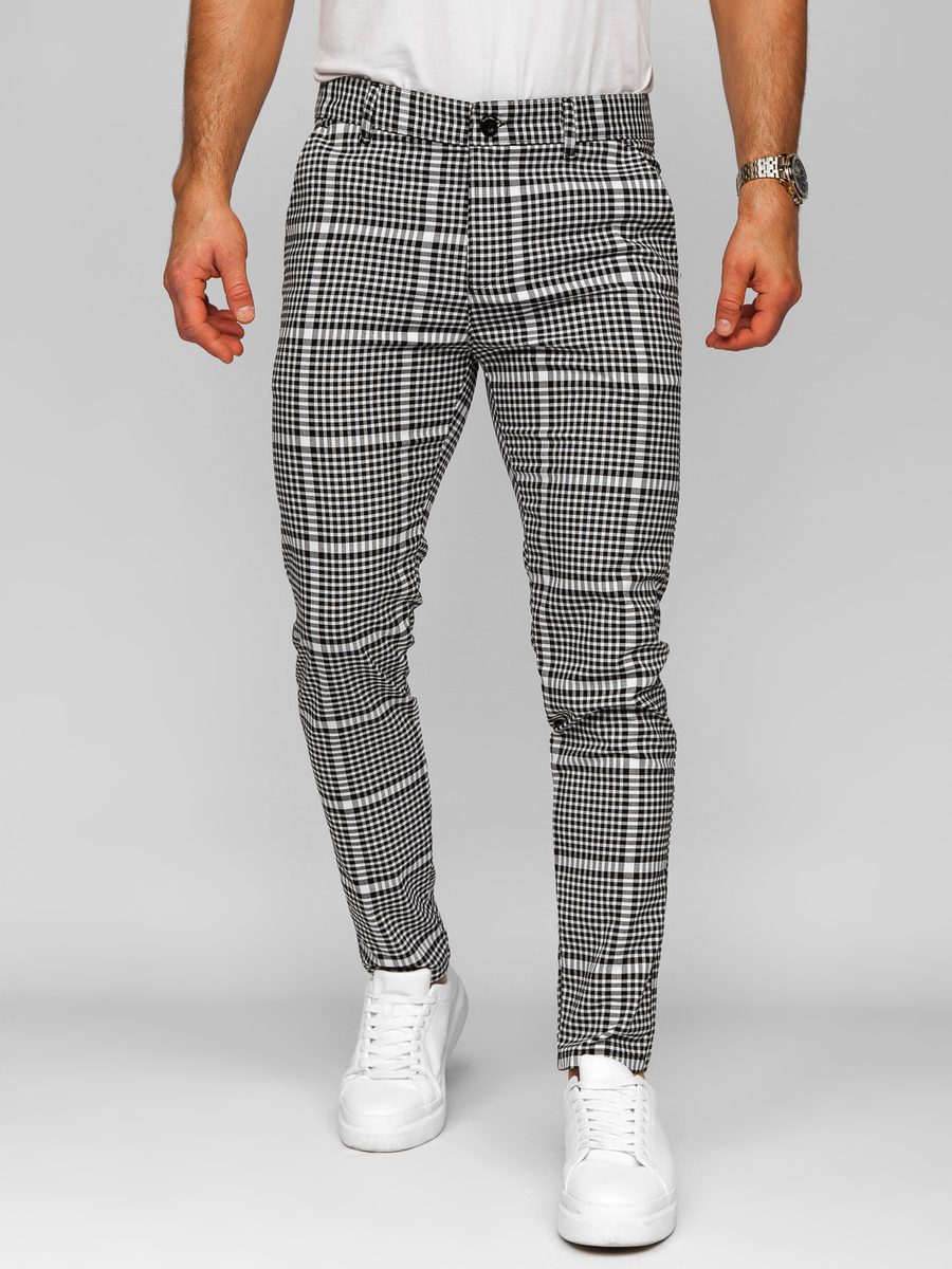 A felhasználók véleménye Fekete-fehér férfi kockás elegáns szövetnadrág Bolf 184147