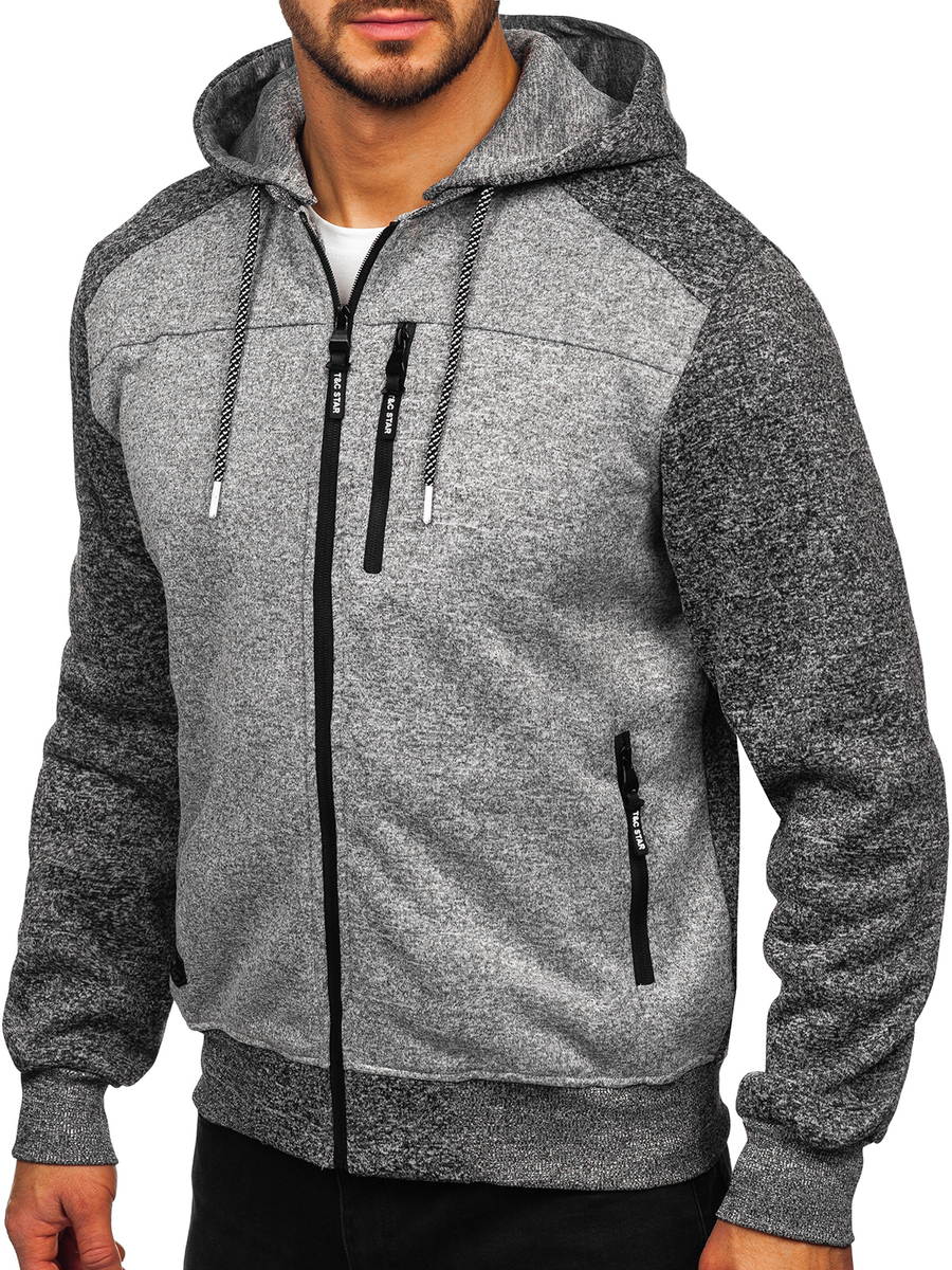 A felhasználók véleménye Szürke férfi pulóver-dzseki kapucnival Bolf TC1219