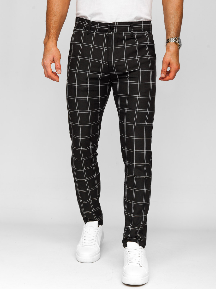 A felhasználók véleménye Fekete férfi kockás elegáns szövetnadrág Bolf 184188