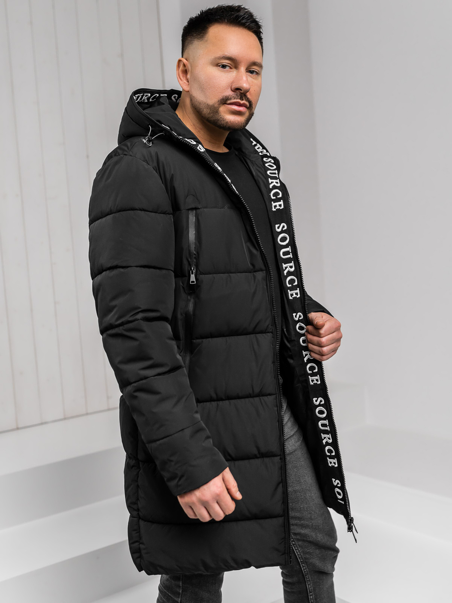 A felhasználók véleménye Fekete hosszú steppelt férfi téli dzseki kapucnival Bolf 22M329