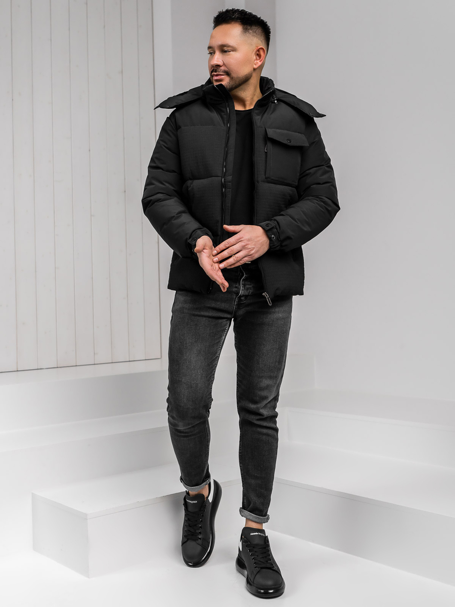 A felhasználók véleménye Fekete férfi télikabát kapucnival Bolf 19M1292A1