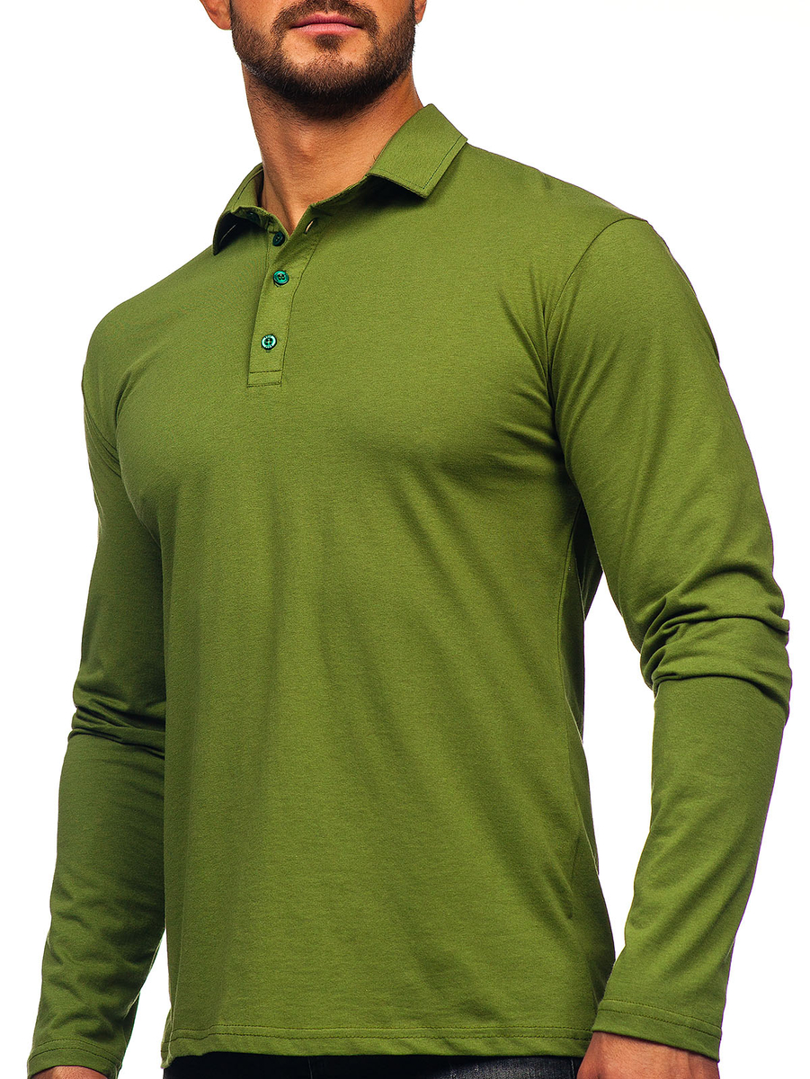 A felhasználók véleménye Zöld férfi hosszú ujjú pamut póló Bolf 5119