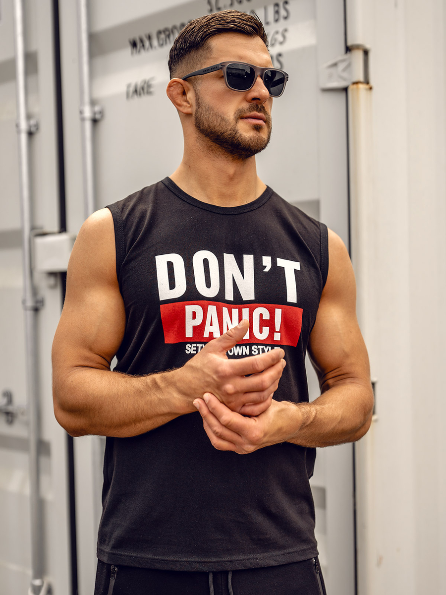 A felhasználók véleménye Fekete férfi tank top trikó mintával Bolf 14827A