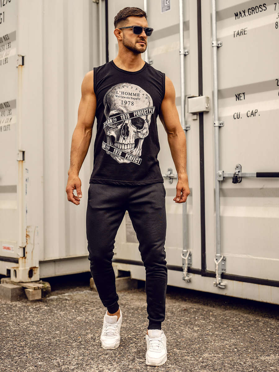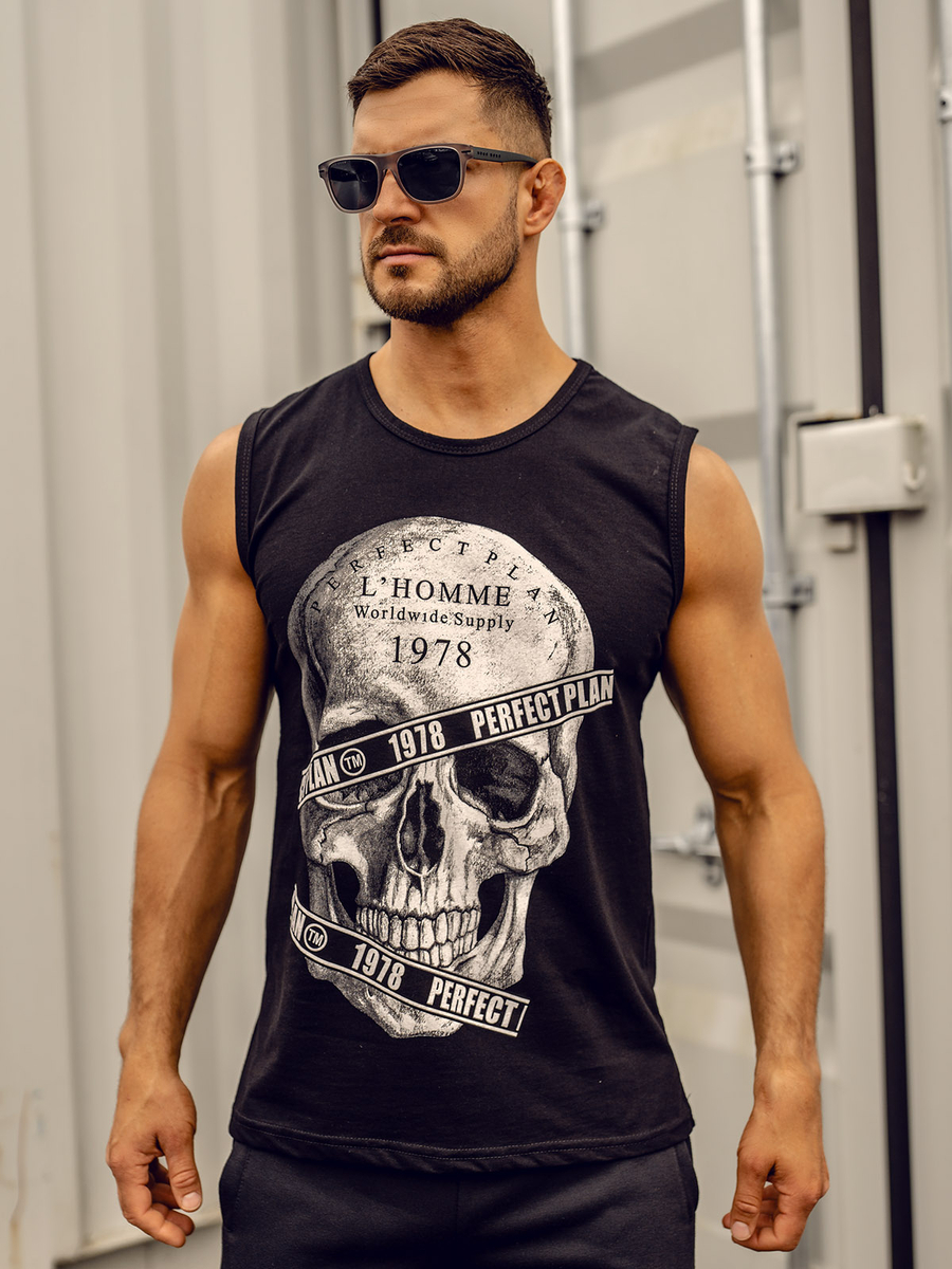 A felhasználók véleménye Fekete férfi tank top trikó mintával Bolf 14807A