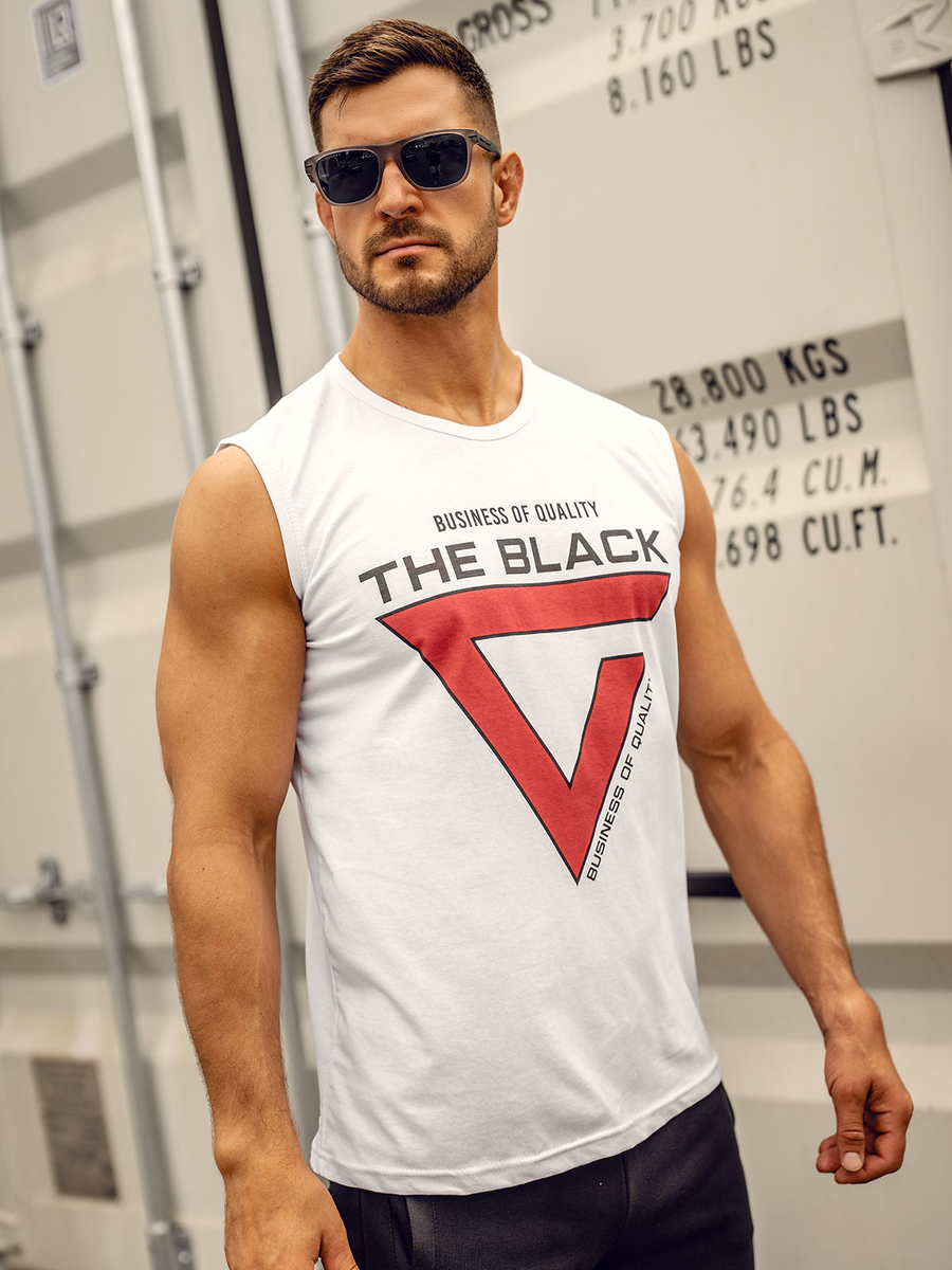 A felhasználók véleménye Fehér férfi tank top trikó mintával Bolf 14816A
