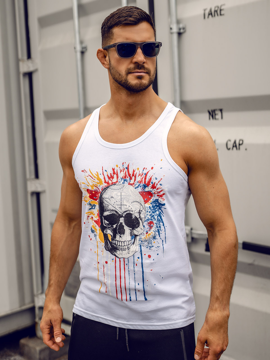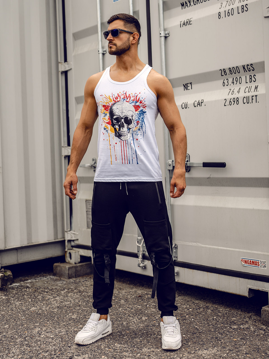 A felhasználók véleménye Fehér férfi tank top trikó boxer mintával Bolf 14839A