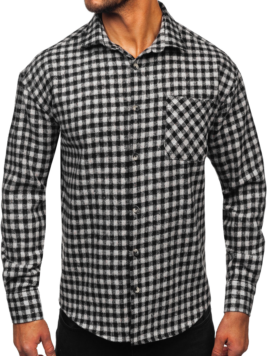 A felhasználók véleménye Szürke férfi flanel kockás ing hosszú ujjú Bolf 2025-2