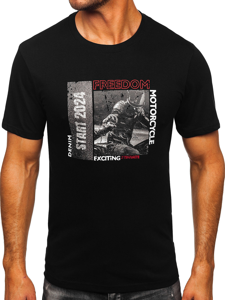 A felhasználók véleménye Fekete pamut férfi póló mintával Bolf MPO3475