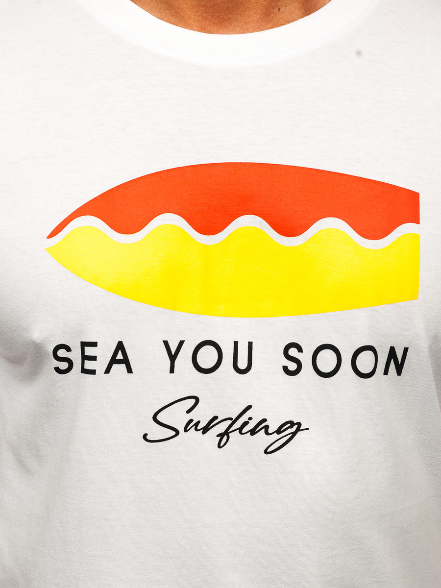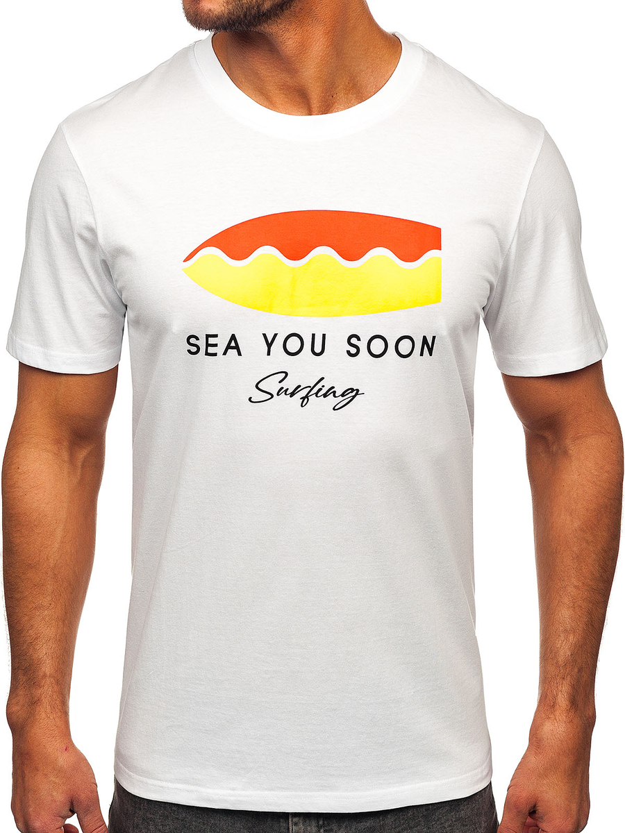 A felhasználók véleménye Fehér pamut férfi póló mintával Bolf MPO3457