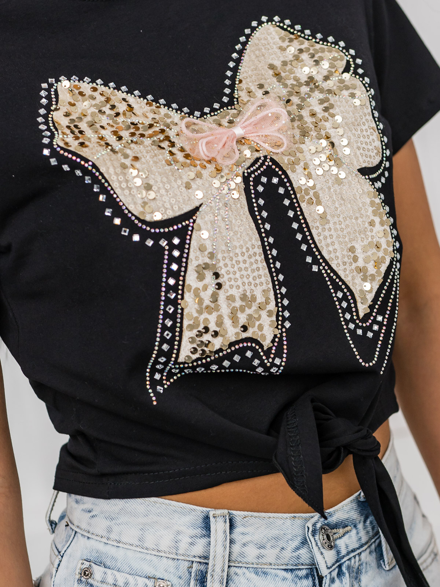 A felhasználók véleménye Fekete női póló applikációval Bolf 96T612