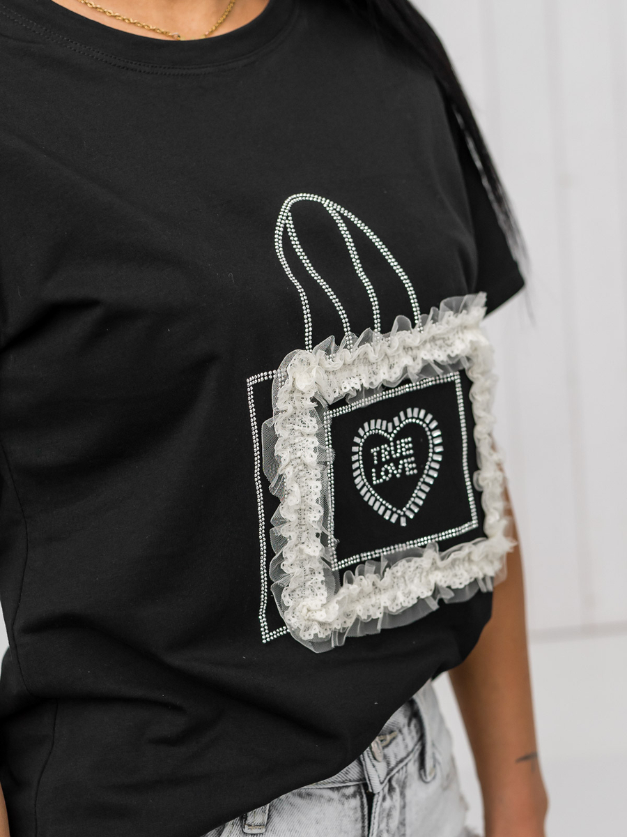 A felhasználók véleménye Fekete női póló applikációval Bolf 97T2102