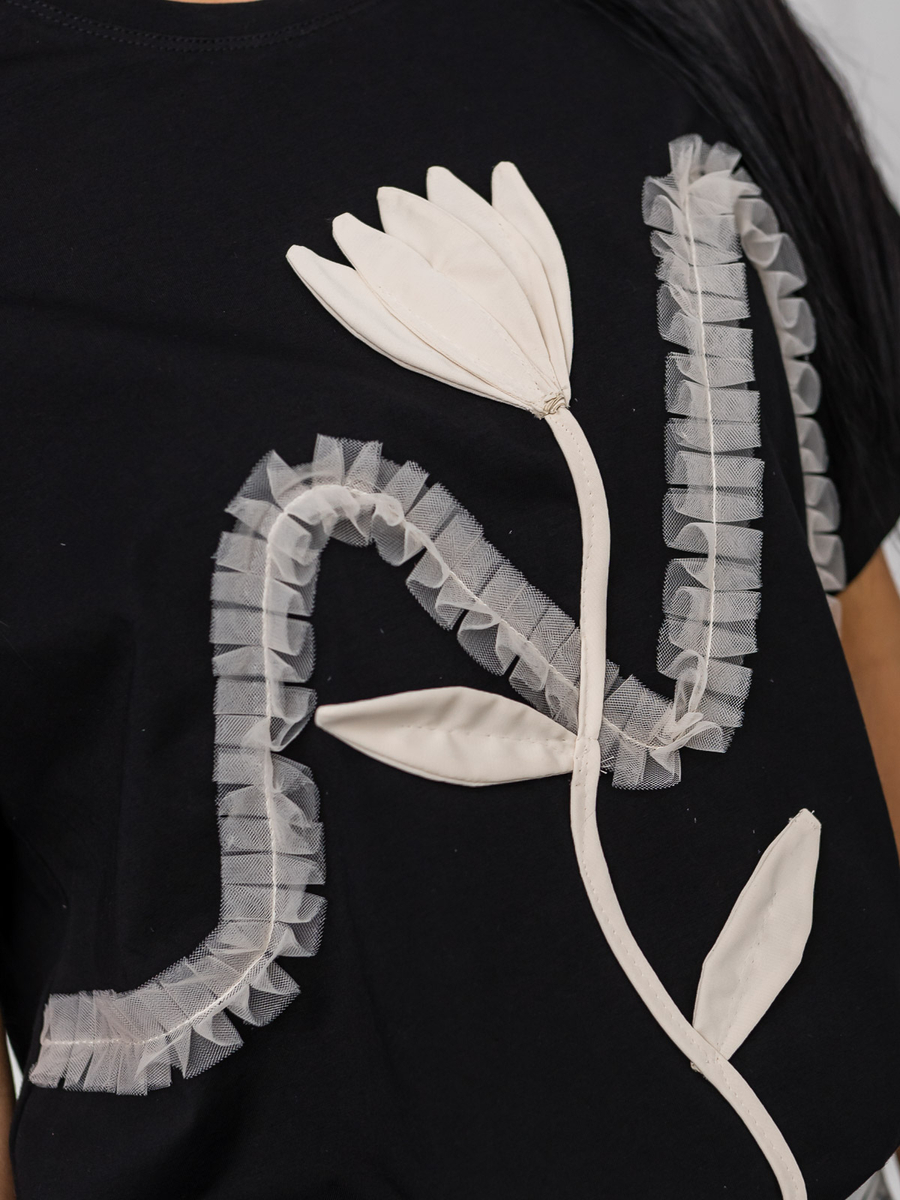 A felhasználók véleménye Fekete női póló applikációval Bolf 96T632