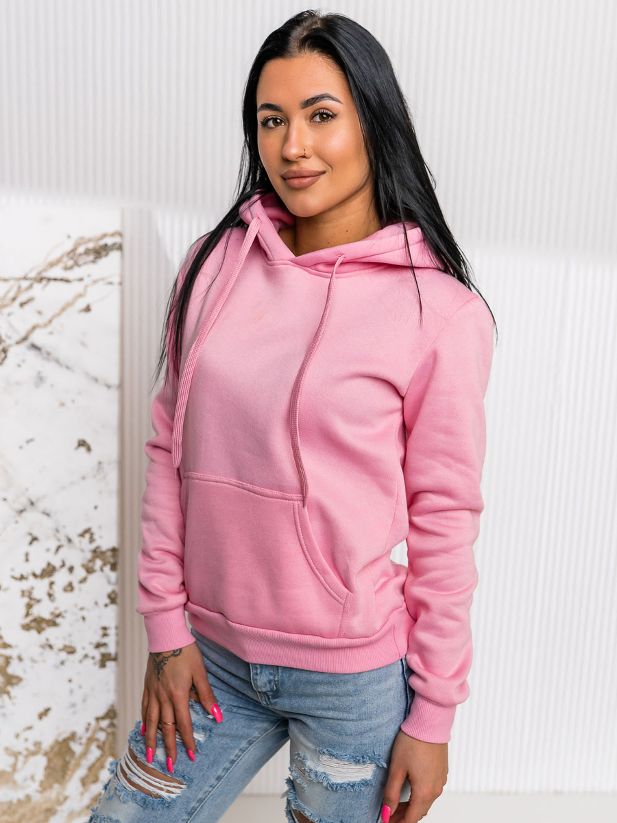 Rózsaszín női pulóver Bolf W02A1 fejbe bújós fazonban készült. Klasszikus szabású pulcsi, puha, kellemes tapintású melegítőanyagból készült. Pulcsi, különféle eredeti és különleges színekben is kapható. Zsinórral állítható kapucnival és elöl praktikus kenguruzsebbel rendelkezik. A pulcsi alja és az ujjai erős, széles passzéval vannak ellátva. A pulcsit elsősorban a minimalizmus és a sportos kényelem kedvelőinek ajánljuk. Szépen varrott és kényelmes. Egy igazi must have a divatos női szekrényben. Az egyszerű, klasszikus, érdekes színű fazonjának köszönhetően ez a pulcsimodell nagyszerűen kiegészít számos hétköznapi, streetes és sportos stilizációt. A minta nélküli női pulcsi kapucnival és nagy zsebbel olyan ajánlat, amelyet érdemes egy-, vagy többféle színben is a ruhatárban tartani. A pulcsi minden évszakban, bármilyen körülmények között és minden laza stilizációhoz tökéletesen megállja a helyét.