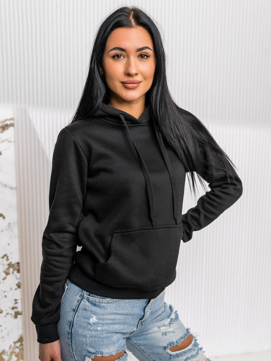 Fekete női pulóver Bolf W02A1 fejbe bújós fazonban készült. Klasszikus szabású pulcsi, puha, kellemes tapintású melegítőanyagból készült. Pulcsi, különféle eredeti és különleges színekben is kapható. Zsinórral állítható kapucnival és elöl praktikus kenguruzsebbel rendelkezik. A pulcsi alja és az ujjai erős, széles passzéval vannak ellátva. A pulcsit elsősorban a minimalizmus és a sportos kényelem kedvelőinek ajánljuk. Szépen varrott és kényelmes. Egy igazi must have a divatos női szekrényben. Az egyszerű, klasszikus, érdekes színű fazonjának köszönhetően ez a pulcsimodell nagyszerűen kiegészít számos hétköznapi, streetes és sportos stilizációt. A minta nélküli női pulcsi kapucnival és nagy zsebbel olyan ajánlat, amelyet érdemes egy-, vagy többféle színben is a ruhatárban tartani. A pulcsi minden évszakban, bármilyen körülmények között és minden laza stilizációhoz tökéletesen megállja a helyét.