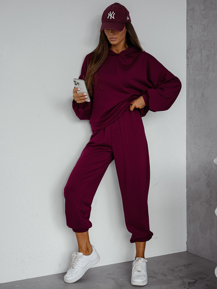 A felhasználók véleménye Női két darabos szett kapucnival bordó Bolf 525